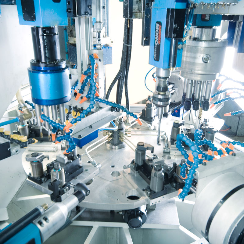 Rundtaktmaschinen und Transferstraßen mit Roboterhandling und Mehrspindelbohrköpfen